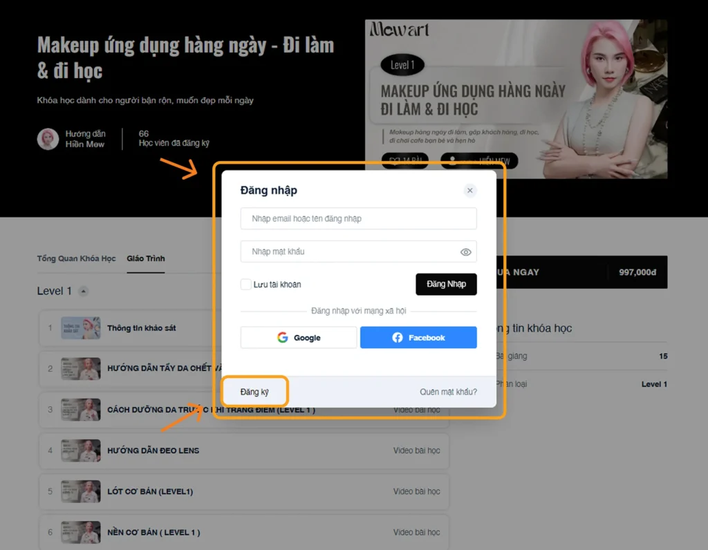 Anh/chị chỉ cần nhấp vào nút Đăng ký / Mua khóa học trên website, sau đó điền thông tin và hoàn tất thanh toán.