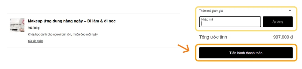 Nhập mã giảm giá (nếu có), sau đó nhấn “Tiến hành thanh toán”.